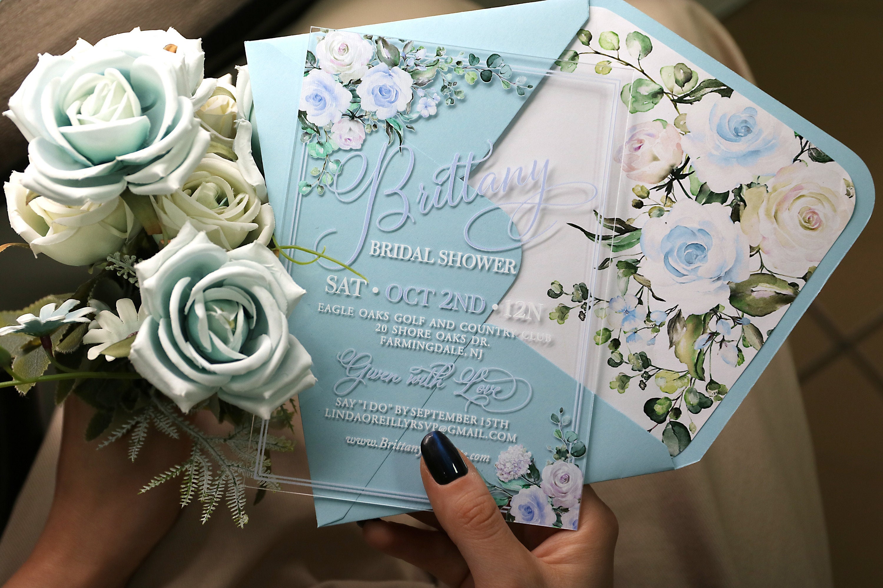 Acrylic Wedding Invitations Light Blue And White Roses Etsy